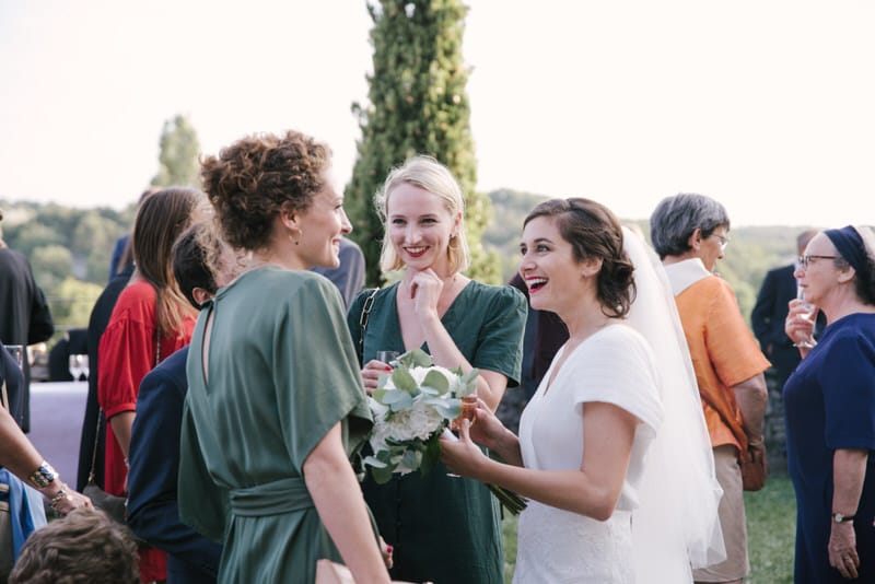 Après la cérémonie, les invités ont profité d’un cocktail en extérieur, dans cette lumière dorée typique de la Drôme en fin d’après-midi.