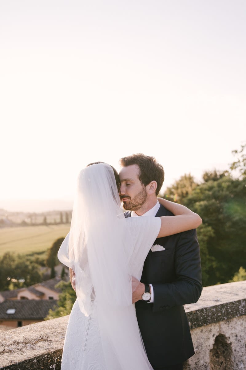 Les mariés en ont profité pour une séance couple dans les jardins, un moment intime où la lumière se mêlait aux textures pierre du château.
