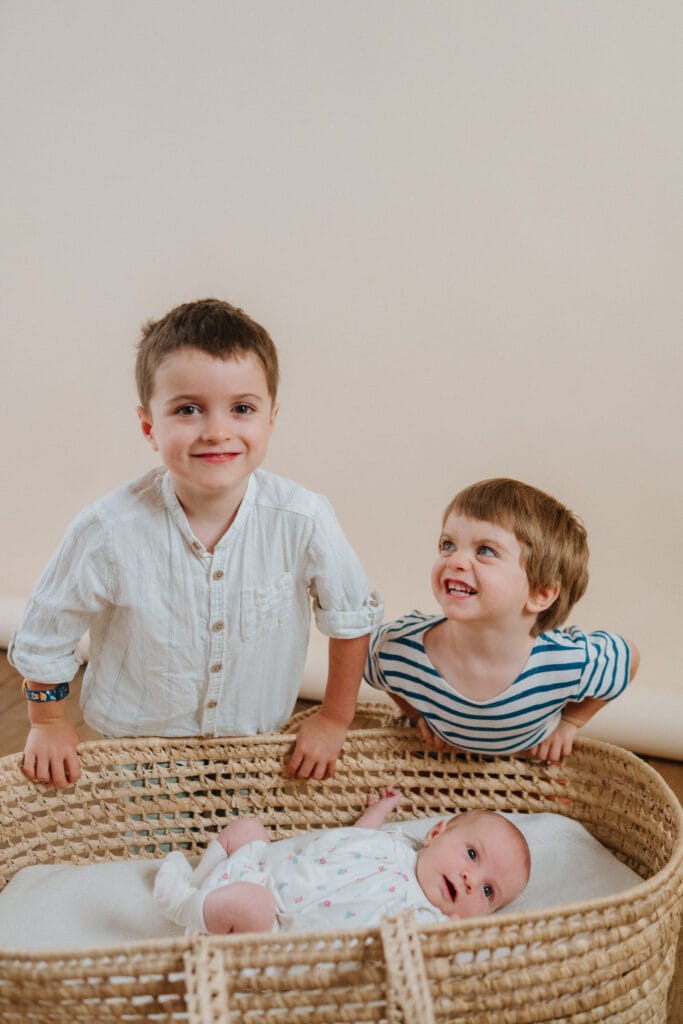 Immortaliser ses premières semaines de vie, chez vous en mode reportage. Des portraits en famille, avec chaque parents, de la fratrie et de bébé seul.